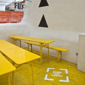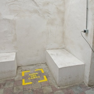 Also with nobody singing, the listening zone is an invitation for usage. One may want stand in the zone for a few minutes with eyes closed and just listen to the world around. One will hear all the different activities in FARM and some distant noise from Favara. And with patience and luck, one might hear somebody singing.